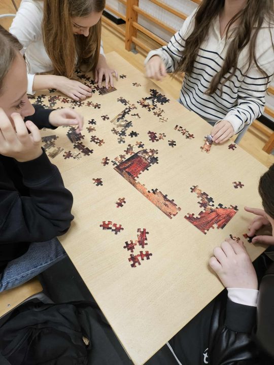 - układanie puzzli z obrazem Jana Matejki – „Kazanie Skargi”,